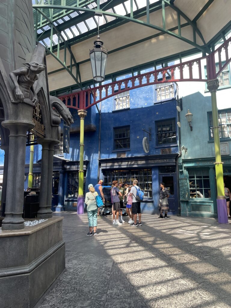 Il parco di Harry Potter è dentro agli Universal Studios di Orlando, che sono caldissimi e totalmente perdibili. Certamente non c’era la grande organizzazione anticaldo di Disney, né il numero illimitato di fontanelle da cui bere o bagnarsi, né tantomeno il numero spropositato di bagni (27 solo a Magic Kingdom!).