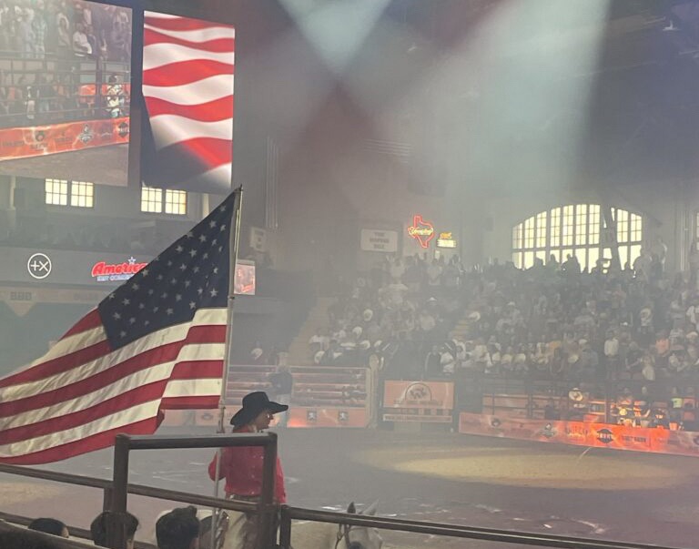 Lo speaker fa partire lo spettacolo alle 19 in punto, ringraziando tutte le persone che rendono possibile la realizzazione dell’evento: pompieri, personale medio, organizzatori, polizia. Segue un saluto e un applauso per chi ha servito (o serve) nelle forze armate americane e un saluto per chi è texano, per chi non è texano e, infine, per chi non è americano.